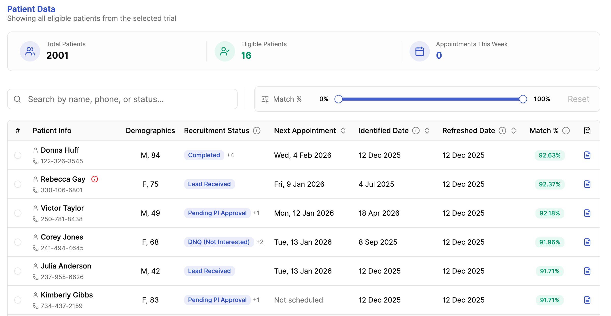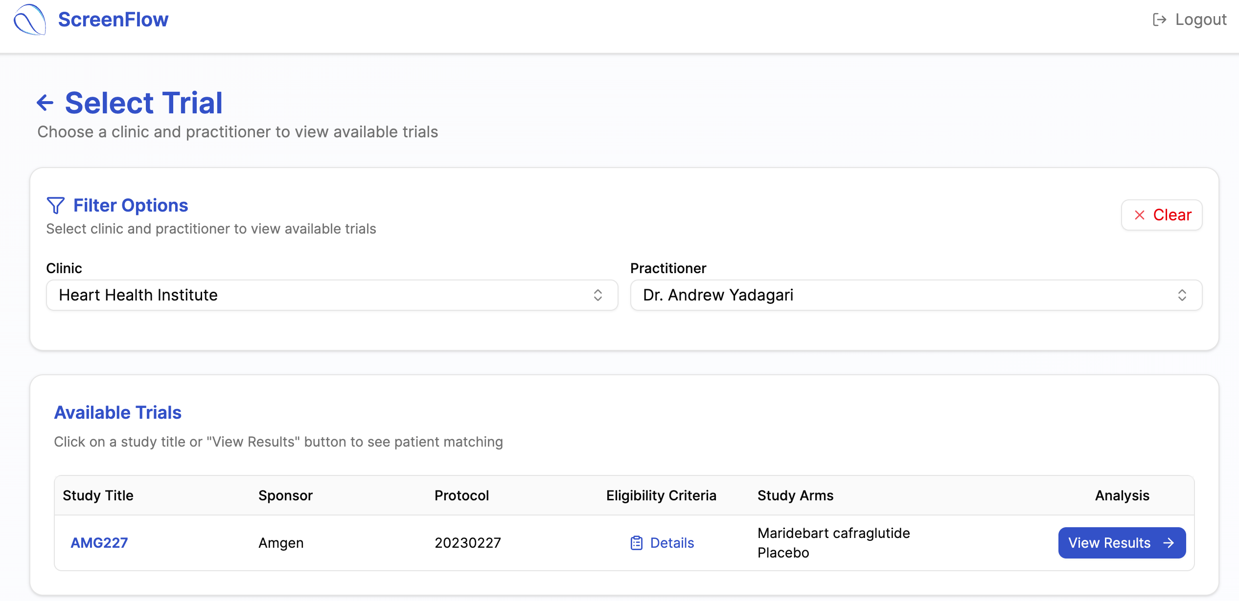 Cardea Health’s ScreenFLOW is a user-friendly, AI-powered platform designed to make life dramatically easier for chart screeners and recruiters by instantly identifying eligible patients from EMRs with unmatched speed and accuracy.